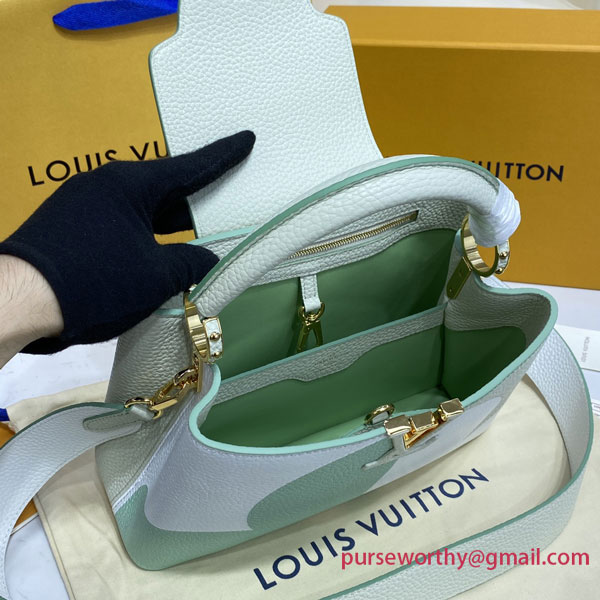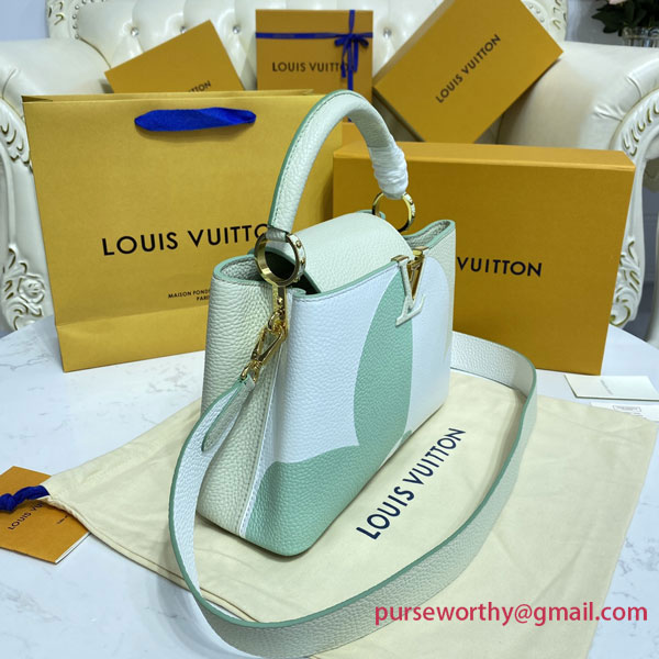 The giant Monogram Flower that adorns this Capucines BB handbag in Taurillon leather is a work of art, debossed on one half and embossed on the other. Mixing Taurillon with smooth leather, the bag offers incredible depth and texture. The wide bicolor leather strap, detachable, ensures style, comfort, and versatility.