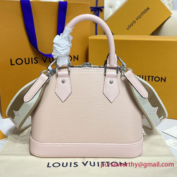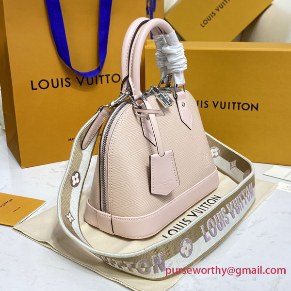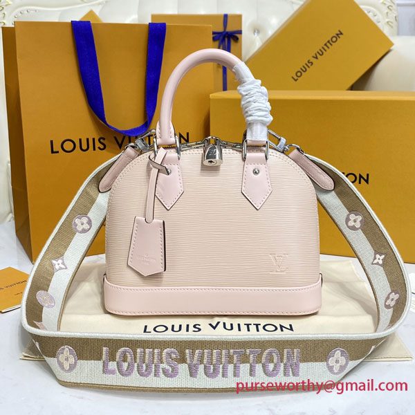 The Alma BB handbag, with its Art Deco shape and heritage details such as the key bell, is crafted from the House’s emblematic Epi grained leather. In addition to its hand-stitched, rolled-leather top handles, this version comes with a removable shoulder strap, signed with the words “Louis Vuitton”, for shoulder or cross-body carry.