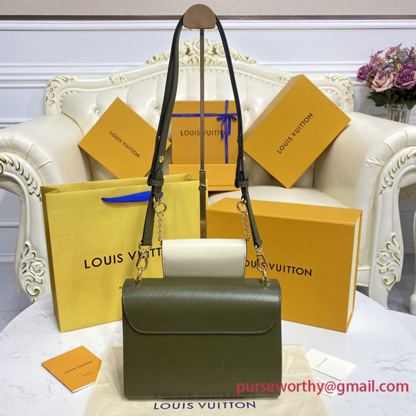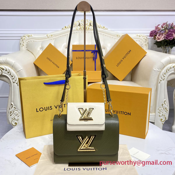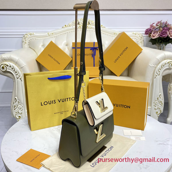 This eye-catching Twist MM handbag boasts a fashionable, detachable companion: the Twisty. Crafted from emblematic Epi leather, in contrasting shades selected from the season’s Spring in the City color palette, both pieces feature the iconic LV Twist lock. Striking when worn as a duo, each bag may also be carried separately.