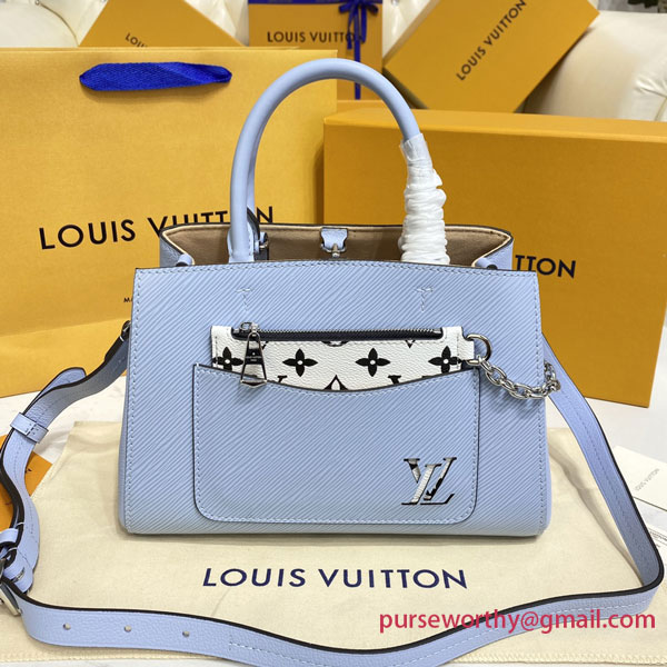 The Marelle Tote BB in Epi leather sports a sleek design and a host of playful details, including a see-through LV signature and a touch of Monogram on the detachable, zipped front pocket. With twin Toron top handles and a strap for shoulder or cross-body carry, this bag goes from office to off-duty in style.