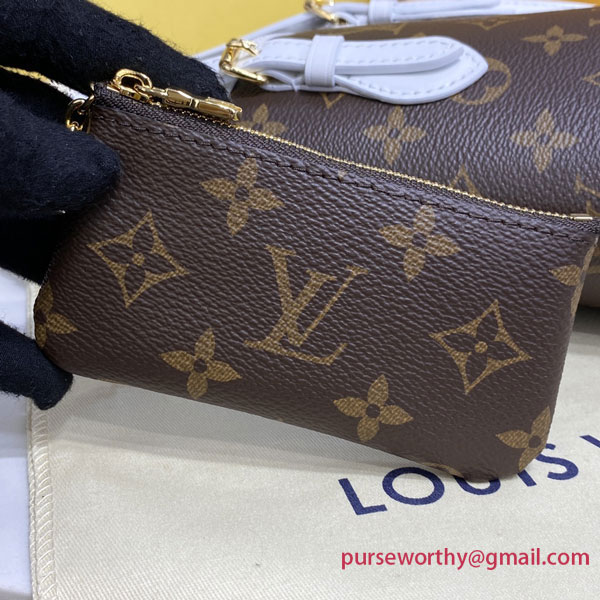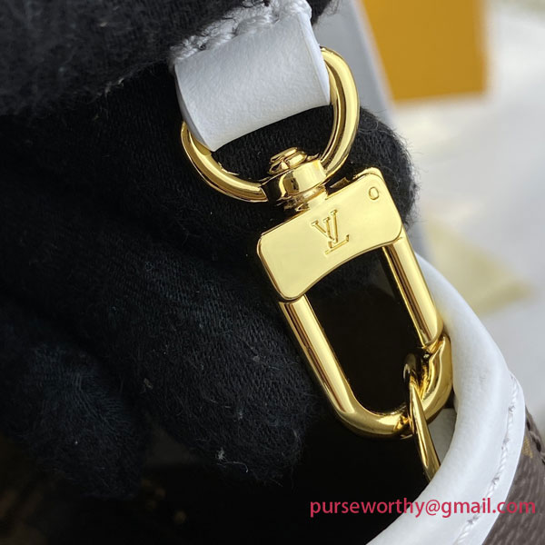 The Nano Bucket in Louis Vuitton's iconic Monogram canvas is part of the LV Match collection, which pays tribute to the world's most famous tennis tournaments. This miniature bucket bag features two adjustable handles and an adjustable, removable shoulder strap in white leather, inspired by the lines on a tennis court. Inside the bag, a removable pouch on a gold-tone chain is perfect for valuables.