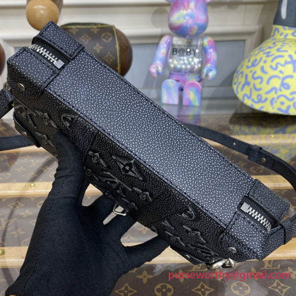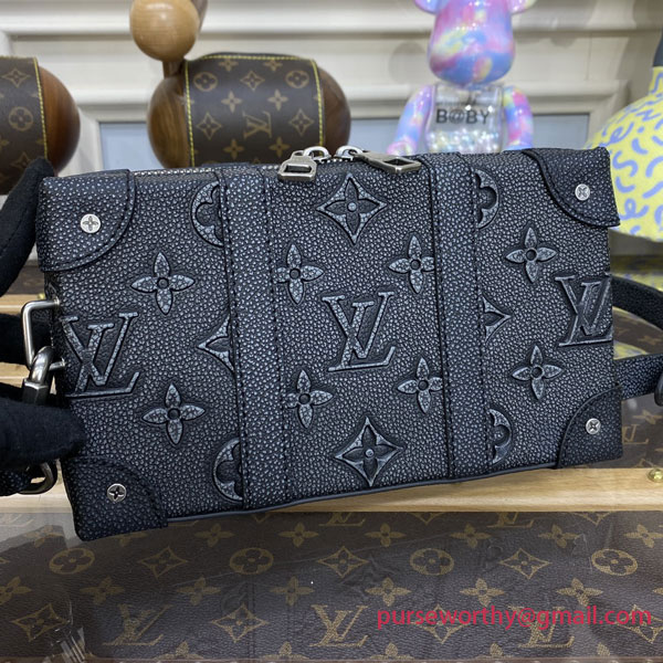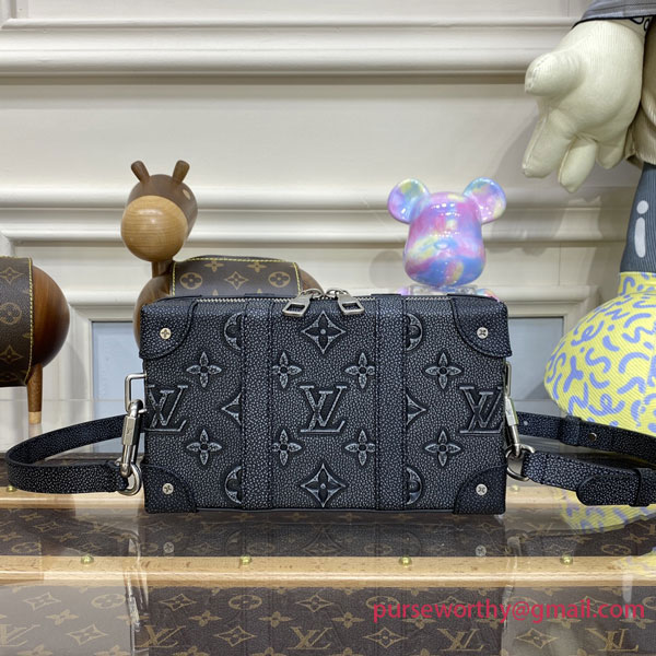 A combination of House codes and innovative leather work, the Soft Trunk is an essential small everyday bag. Made from cowhide leather embossed and printed with the Monogram motif, it has a casually faded aspect. The reinforced corners, rivets, and two side bands evoke the House’s trunk making origins.