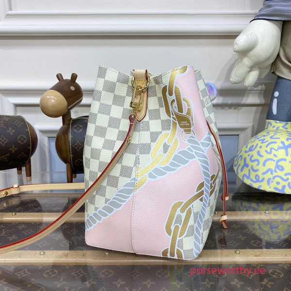 The body-friendly NéoNoé MM bucket bag takes on a summery feel in Damier Azur canvas, livened up with a bold yet feminine nautical print of ropes and chains. The bag’s strap can be adjusted for long- and short-shoulder carry as well as cross-body wear. The inside zipped pocket keeps belongings secure.