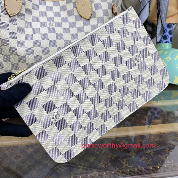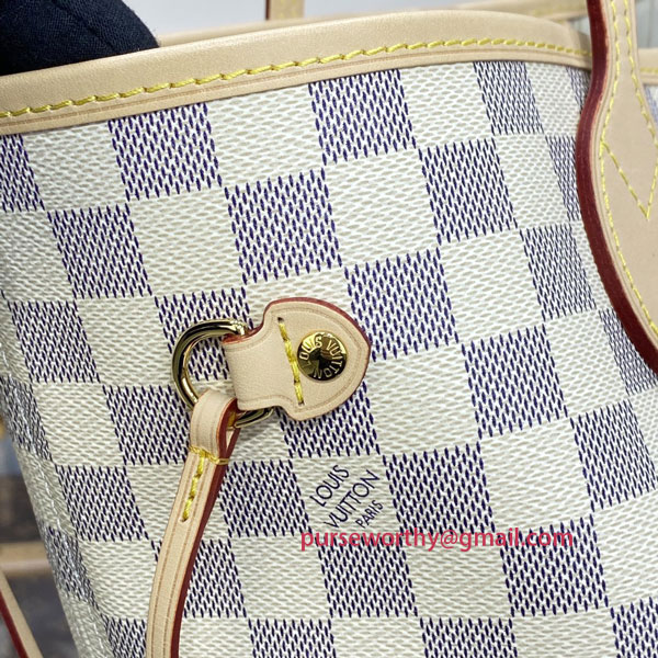 N41605 Neverfull MM Damier Azur Canvas (Rose Ballerine)