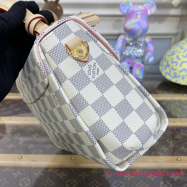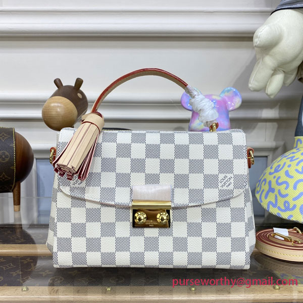 A compact bag with modern lines, the Croisette in summery Damier Azur canvas boasts sophisticated details (note the signature S-lock) and a casual-chic allure. The removable leather tassel adds a touch of fun. Sized to fit the essentials plus a long wallet, this versatile piece can be hand-carried, slung over the shoulder or worn cross-body.