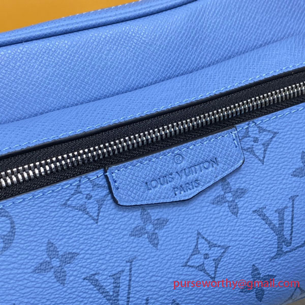 This sleek Outdoor Bumbag hails from the latest Taïgarama lineup of city bags for men. Constructed from a signature mix of tonal canvas and supple Taïga cowhide leather in a stylish Denim blue hue, this adjustable belt bag keeps belongings secure yet readily accessible. The strap adapts easily for trendy front or back cross-body wear.