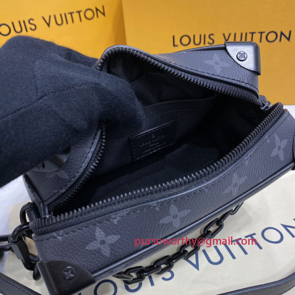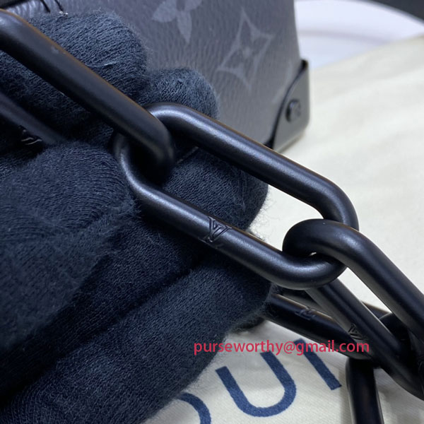 Created by Virgil Abloh for the Spring-Summer 2019 show, the Mini Soft Trunk bag is made from Monogram Eclipse canvas and boasts a matte-black chain in resin. This boxy yet elegant accessory evokes the House’s trunk making heritage. It can be worn over the shoulder or carried as a clutch.