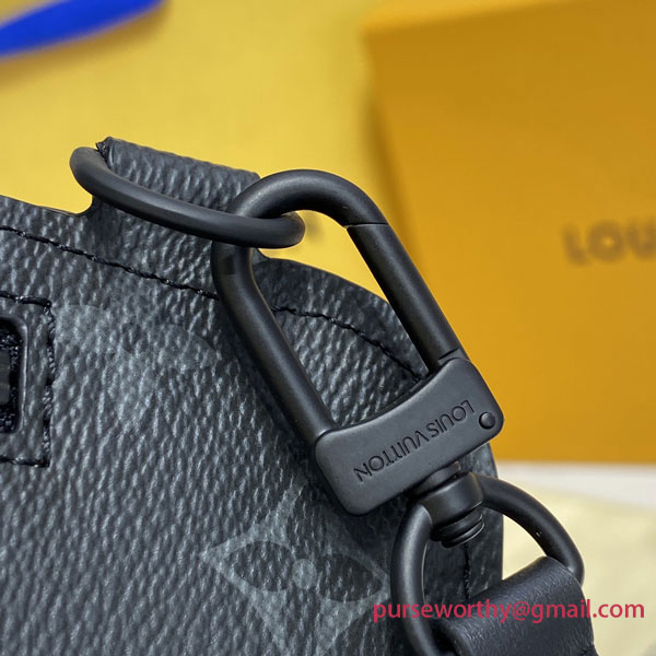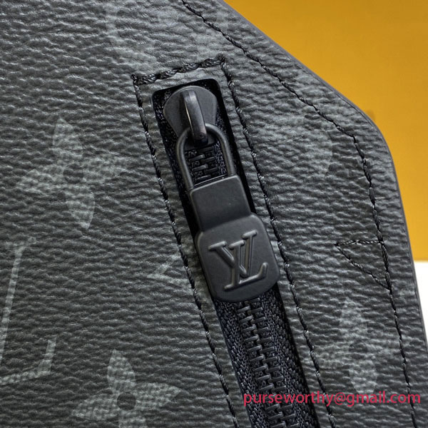This new interpretation of the Slingbag is styled after Louis Vuitton’s iconic Saumur model from 1986. Monogram Eclipse canvas is paired with black leather details that recall the House’s historic know-how, like the buckled strap held in place by a riveted signature loop. A compact, body-friendly bag, perfect for carrying a phone and other small essentials.