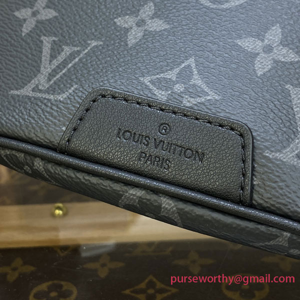 Crafted from Monogram Eclipse canvas, the Discovery bumbag offers the ideal mix of casual chic and modern functionality. With a body-friendly shape and adjustable belt, it can be worn around the waist, over the shoulder or slung stylishly across the chest. Zipped pockets, front and back, provide easy access to phone, cards and keys.