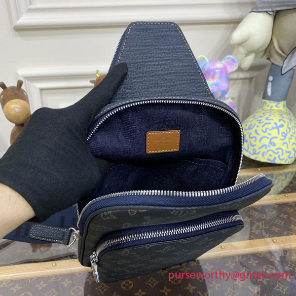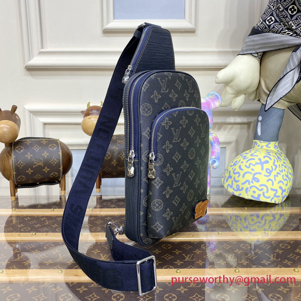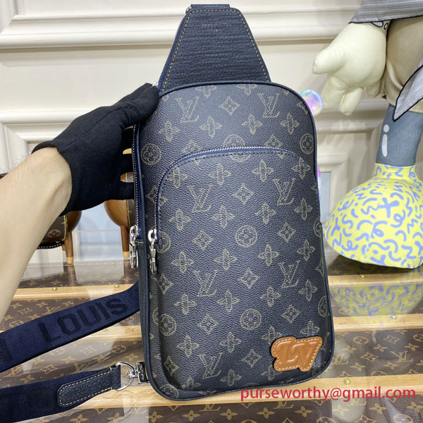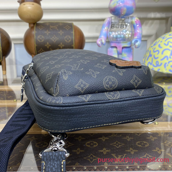 An alternative to the classic backpack, the Avenue Sling Bag is made from Monogram canvas in a colorway inspired by House’s vintage notebooks. Dark-green Monogram Blossoms and LVs on a dark background bring a vintage chic feel. The single “smart” strap can be adjusted for left-side or right-side carry.