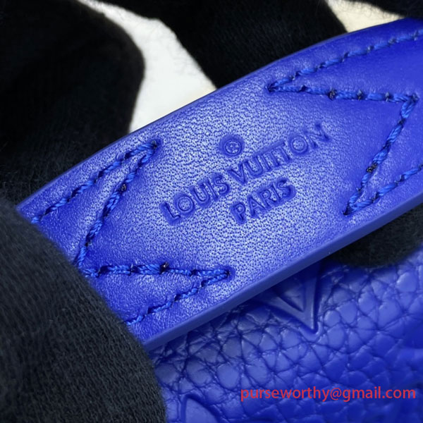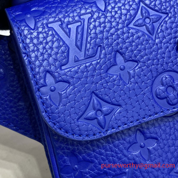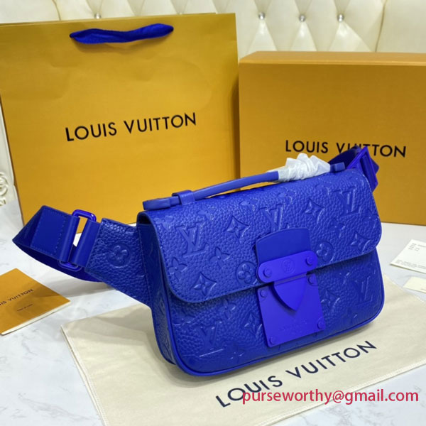 The new S Lock Sling Bag emanates contemporary elegance in Monogram-embossed Taurillon leather deep-dyed a striking shade of blue. An innovative magnetic closure, inspired by a historic Louis Vuitton trunk lock, keeps the contents secure but easy to access. The LV signature strap and embossed handle make it a stylish, versatile accessory, perfect for modern-day lifestyles.