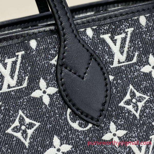 The Neverfull MM tote looks fresh this season, adorned with Monogram Jacquard Denim, a new take on the signature pattern introduced at the Cruise 2023 fashion show. The material’s deliberately raw, stone-washed effect brings a modern attitude to this iconic bag, which features contrasting black leather handles and trim, with silver-finish hardware.