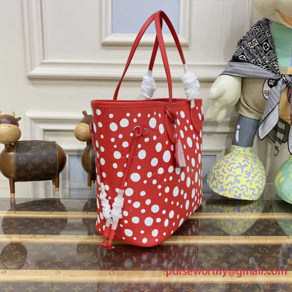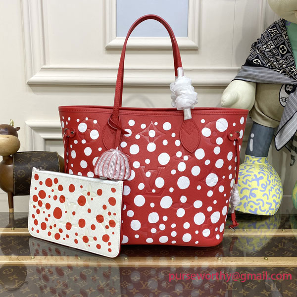 M46422 LV x YK Neverfull MM Monogram Empreinte Leather (Rouge Blanc)