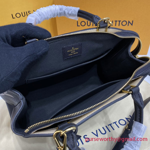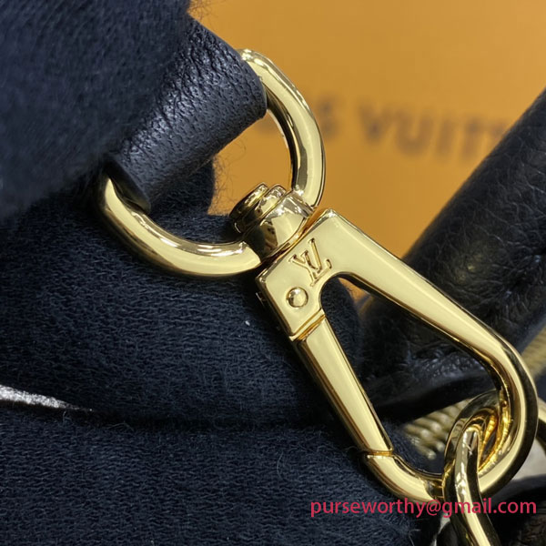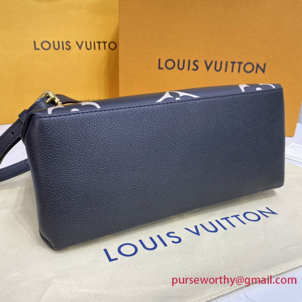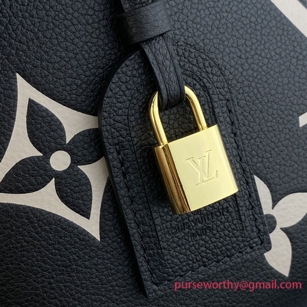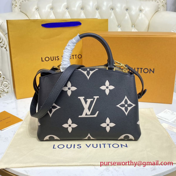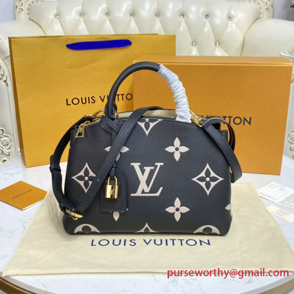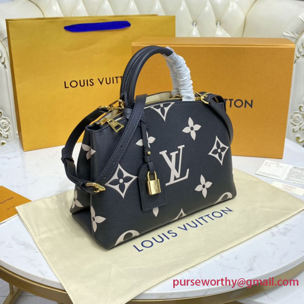 The perfect everyday companion, the smart and sophisticated Petit Palais handbag is fashioned from grained leather with an oversized pattern of Monogram Flowers and LVs printed and embossed on it. The gold-color padlock and leather name tag bring to mind the House’s legacy of fine luggage. A detachable strap can be adjusted for comfortable shoulder and cross-body wear.