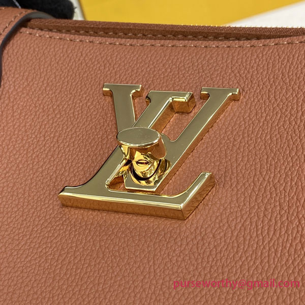 Comfortable to carry thanks to its two long leather straps, the Lockme Shopper handbag in supple calf leather is instantly recognizable by its iconic LV turn lock, which secures the closure. Rounded and folded gussets give the bag a feminine feel and make it roomy enough to hold everyday essentials, including A4 files.