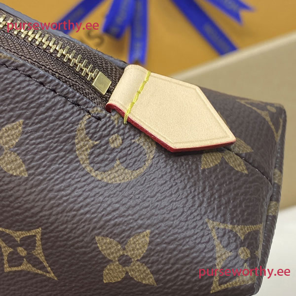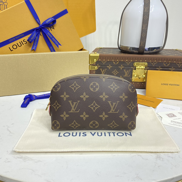 In ever-stylish Monogram canvas the Cosmetic Pouch is a luxurious accessory. Shiny golden brass details and textile lining complete its elegant look.