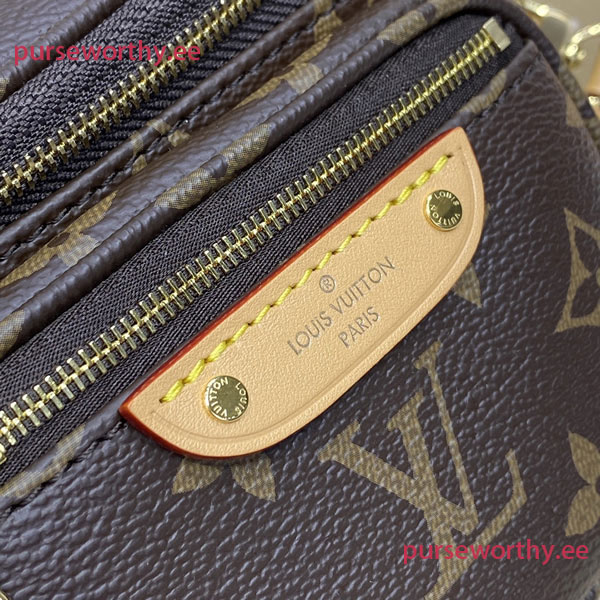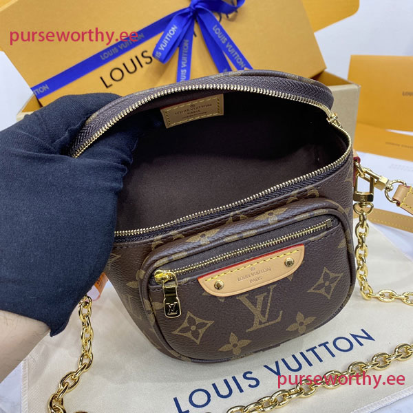 The Mini Bumbag in Monogram canvas is Louis Vuitton's feminine interpretation of the on-trend bumbag format. Designed for versatility, it features a removable, adjustable strap in the House's emblematic natural leather, as well as a removable gold-tone chain, which can be functional or decorative. The bag has a zipped main compartment and a zipped front pocket with an embossed leather tag.