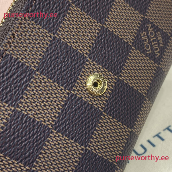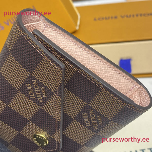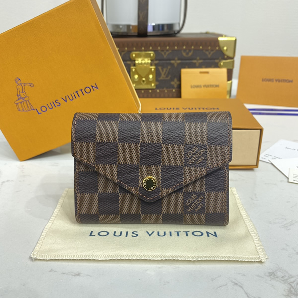 The Victorine wallet in Damier Ebene canvas is a compact, envelope-style design which opens out to reveal a range of practical features. It includes space for bills and cards, and a zipped coin pocket on the side.