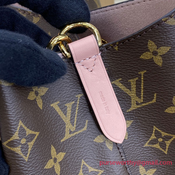 A true House icon, the NéoNoé bucket bag revisits a 1932 design by Gaston-Louis Vuitton. The original was created to transport bottles of Champagne in style; this modern version in Monogram canvas features a sleek shape, colorful leather trim and a matching bonded lining. The adjustable smart strap can be slung over the shoulder or lengthened for a trendy cross-body carry.