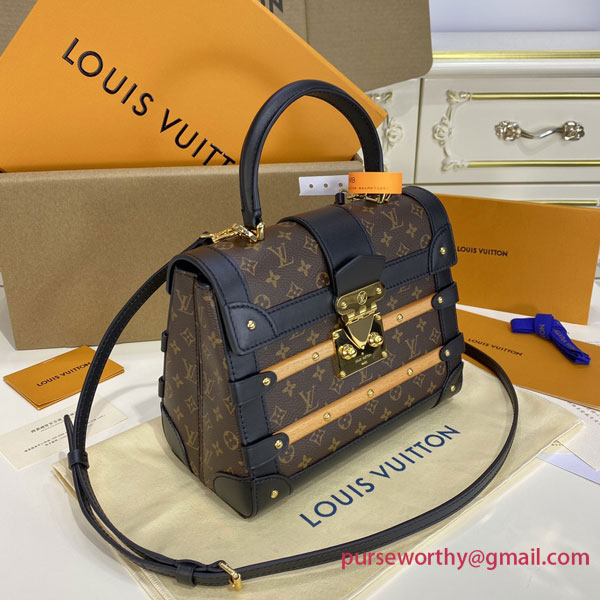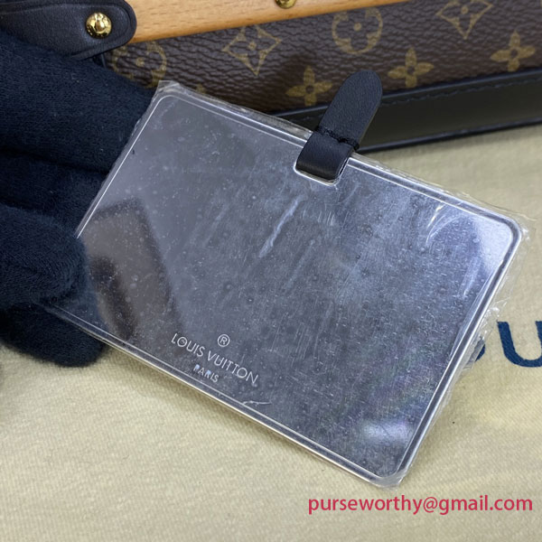 Inspired by the House’s trunkmaking legacy, Nicolas Ghesquière has created the adorable Trianon PM handbag in Monogram canvas. It’s semi-rigid construction, S-lock, and wooden and leather trim clearly evoke Louis Vuitton’s historic trunks. It has a single top handle for hand carry as well as a removable, adjustable leather strap for shoulder or cross-body carry.
