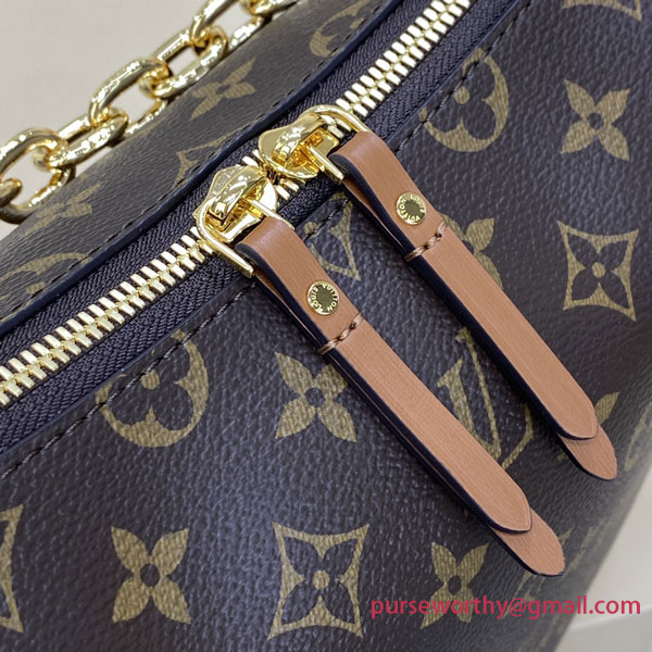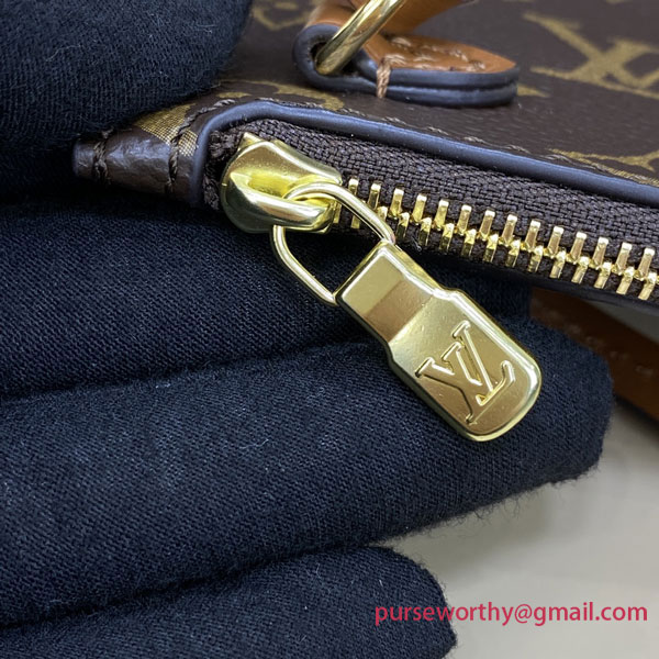 A supple and roomy bag, the Loop Hobo is made from a mix of Monogram and Monogram Reverse coated canvas. Its on-trend half-moon shape is emphasized by the leather corners. A removable chain and removable and adjustable leather strap enable multiple carrying options.