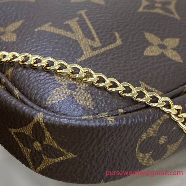 The Mini Pochette Accessoires in Monogram canvas is a stylish way to carry essentials. Its secure zip protects a spacious compartment, while the chain and hook enable it to be attached to a larger bag, as well as carried in the hand. The rounded shape and supple canvas give this pouch a particularly pleasant feel.