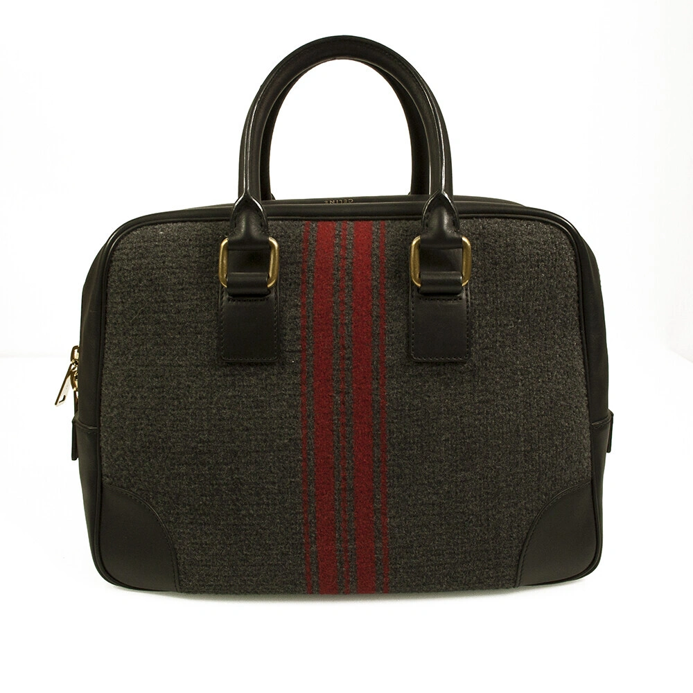 Material: black leather, tweed