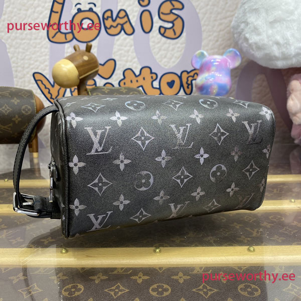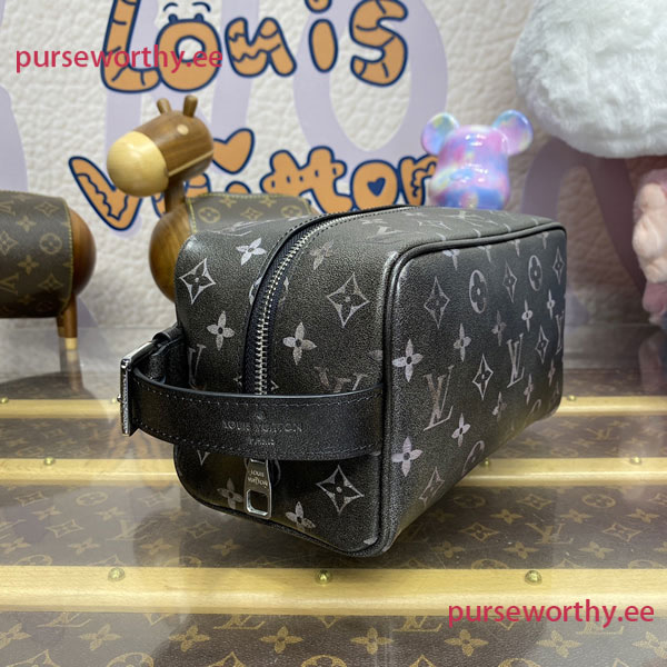 The Locker Dopp Kit gives off vintage charm in Brushed Monogram leather, with its faded Monogram. Perfect for storing and transporting grooming essentials, it has a washable lining and an adjustable handle that can be used to hang the kit on a hook in the bathroom. The Dopp Kit can also be used as a city bag.