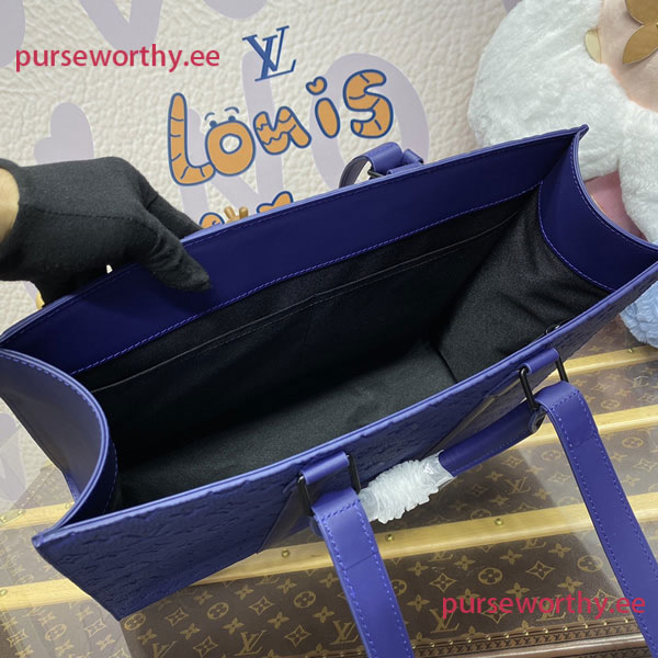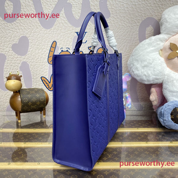 Made from Monogram embossed Taurillon cowhide leather, this Sac Plat 24H carryall bag comes in an elegant sapphire blue colourway. Versatile, it features two sets of handles: top handles for hand carry and two longer handles that slip into the bag when not in use for shoulder carry. The side gussets make this bag unexpectedly roomy.