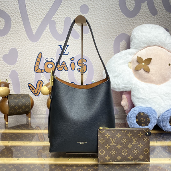 The supple Low Key Hobo PM bag is made from smooth calfskin with suede-calfskin lining. Its unique design includes a single strap that adjusts with a padlock buckle. The interior includes a removable zipped pouch in Monogram canvas to keep things organized. This bag can fit a compact wallet, large smartphone, keys, and other smaller belongings.