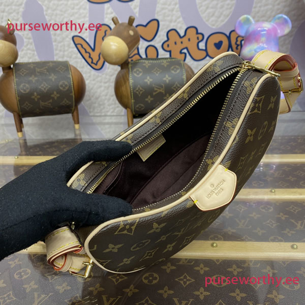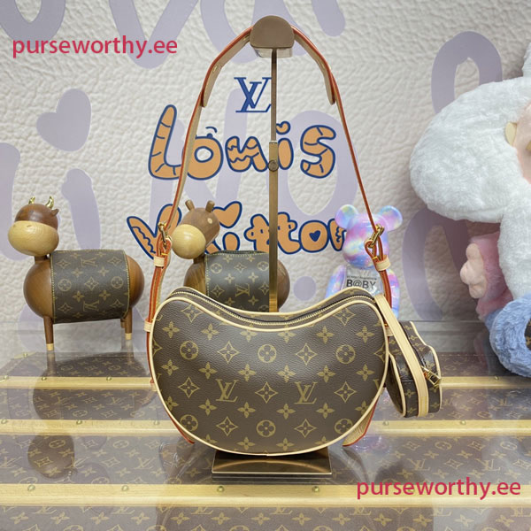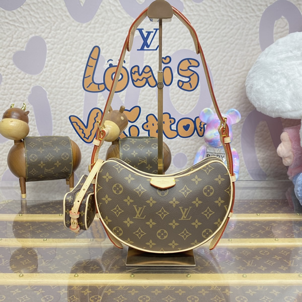 The Croissant MM handbag is made from Monogram coated canvas with natural cowhide-leather trim and comes with an adorable miniature version of the same bag. Thanks to its removable and adjustable strap, this versatile bag can be worn cross-body, short- or long-shoulder, and with or without the matching mini bag.