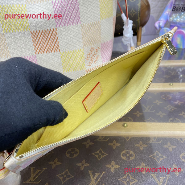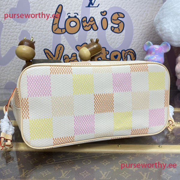 This roomy Neverfull MM tote is made from Damier Giant canvas, playfully updated in a colorway combining four different pastel tones. This functional carryall can be cinched closed with its side laces or left open for a more casual look. Inside, there’s a removable zipped pouch in matching canvas that can be used separately.