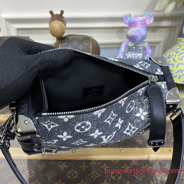 The new Side Trunk handbag is crafted from Monogram Jacquard Denim. Introduced on the Cruise 2023 runway, the stone-washed effect canvas puts a fresh spin on the Maison’s signature pattern. The material’s deliberate rawness highlights the bag’s sophisticated embossed leather trim and polished hardware, inspired by heritage trunks. Both handle and strap are removable, for a variety of styling options.