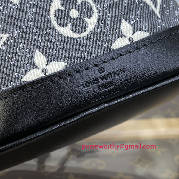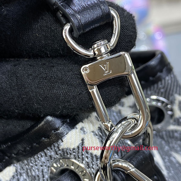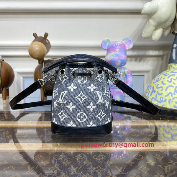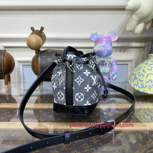 This “nano” version of the iconic Noé bag gets a sophisticated graphic look for Winter 2022 in gray Monogram Jacquard Denim. The House’s historic Monogram pattern is woven with a stone-washed effect into Jacquard fabric. A simple but practical accessory, ideal for adding a Monogram signature accent to a total denim look.