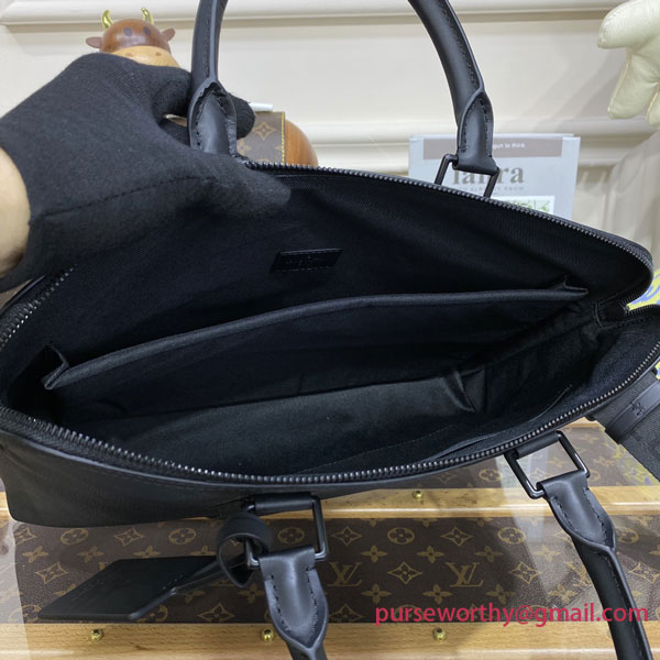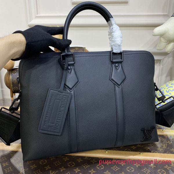 Slim and equipped with a padded pocket for a computer, the business-friendly Briefcase is fashioned from Aerogram grained calf leather for a supple, luxurious feel. It features a removable Jacquard strap, with Louis Vuitton woven into the textile, and is signed with metallic LV Initials on the lower right corner.