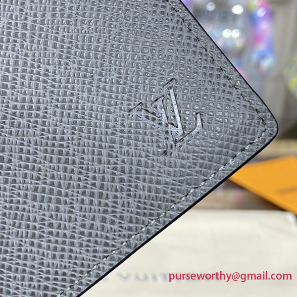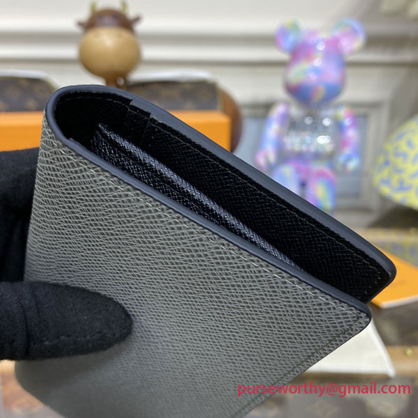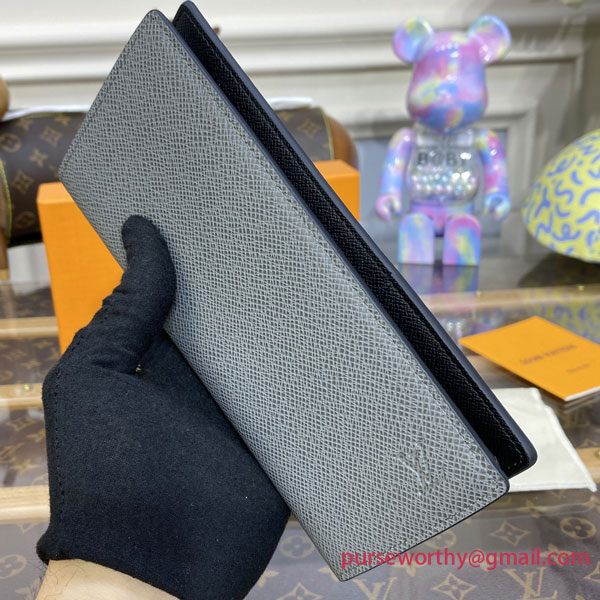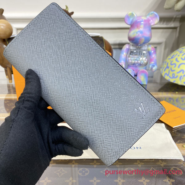 A stylish all-in-one wallet, this Brazza Wallet is made from Taiga cowhide leather in a subtle gray-and-black colorway. The richly textured leather and elegant design are complemented by a myriad of practical features such as multiple compartments for cash and papers plus a coin pouch and 17 card slots.