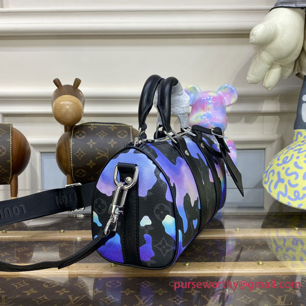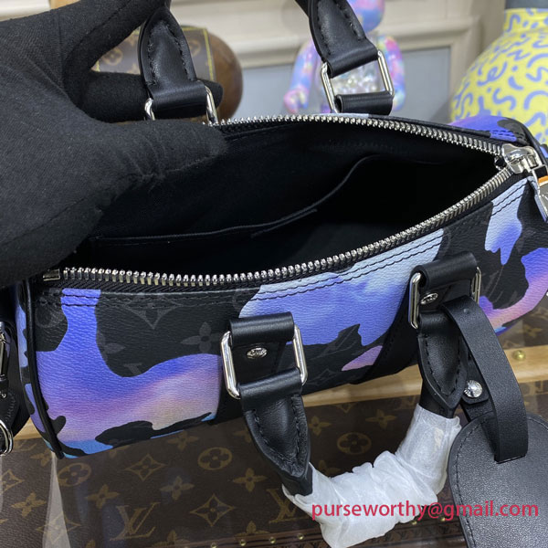 The mini-version of the Keepall joins the “Room with a View” collection for the 2022 year-end holidays. Monogram Eclipse canvas is adorned with a dreamlike image of a blue and purple sunrise, symbolizing the promise of freedom. A closer look reveals the “LV” initials spelled out in the clouds – a fun, vibrant way to sport the Louis Vuitton signature.