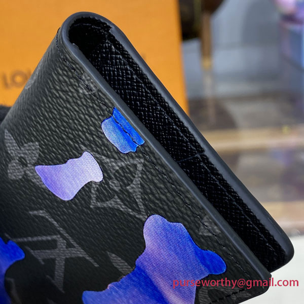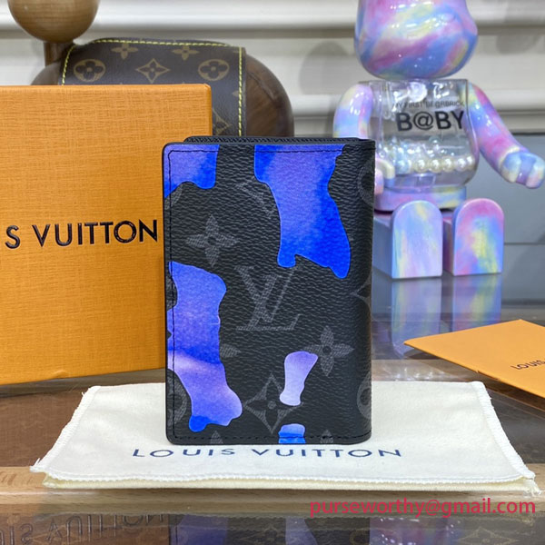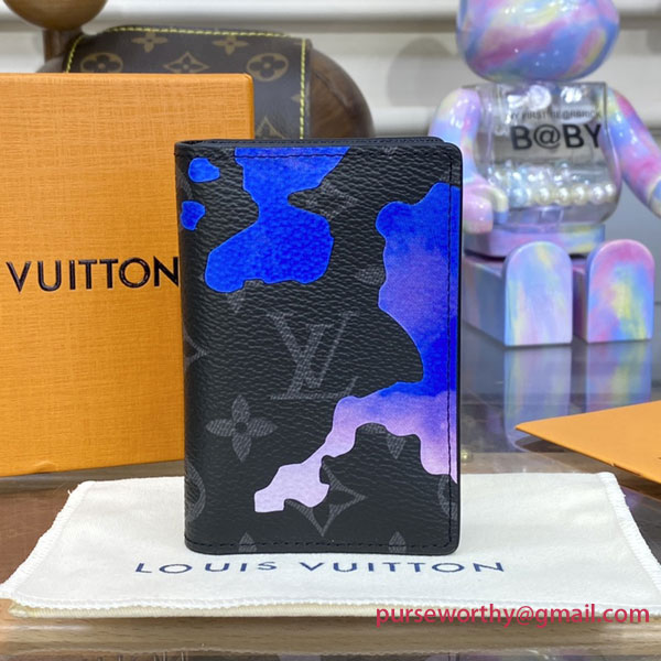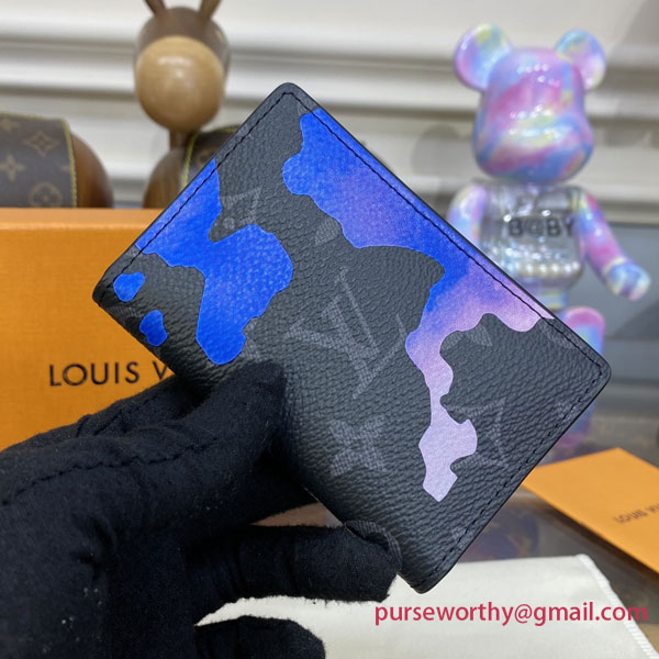 A highly practical, all-purpose wallet, Louis Vuitton’s Pocket Organizer joins the “Room with a View” collection for year’s end 2022 with a poetic new decoration on Monogram Eclipse canvas. A dreamlike sunrise in peaceful shades of blue and purple is dotted with clouds that subtly spell out the House’s initials for a clever signature touch.