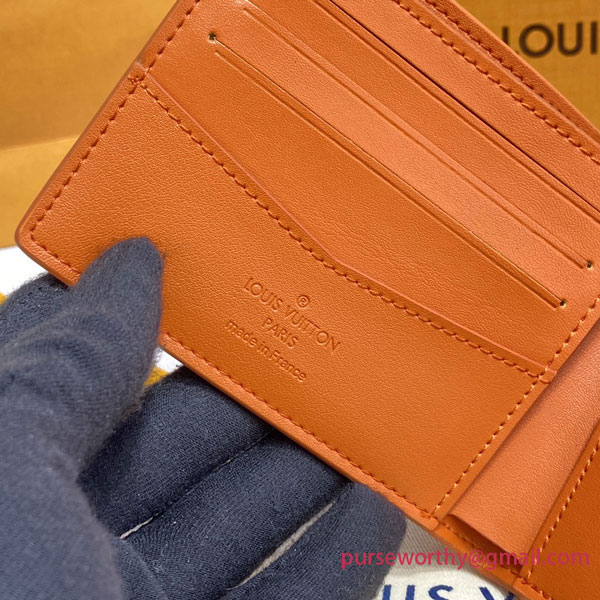 This new interpretation of the Slender wallet is infused with colorful energy for Summer 2022. Top-grade Taurillon cowhide embossed with Louis Vuitton’s heritage Monogram pattern is dyed a brilliant shade of orange, one of designer Virgil Abloh’s signature colors. Large enough to hold all the essentials, yet slim enough to slip neatly into a pocket or bag.