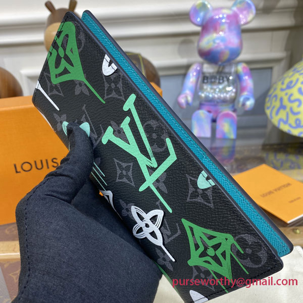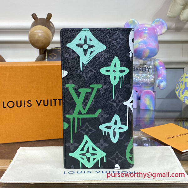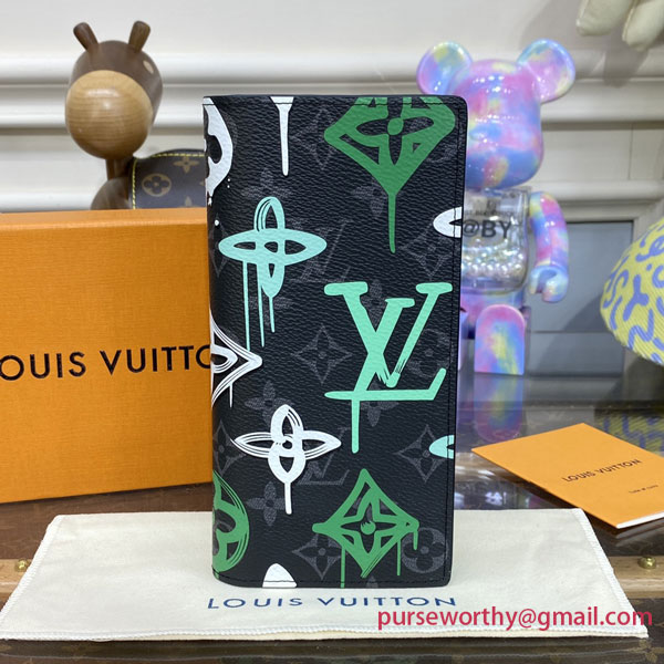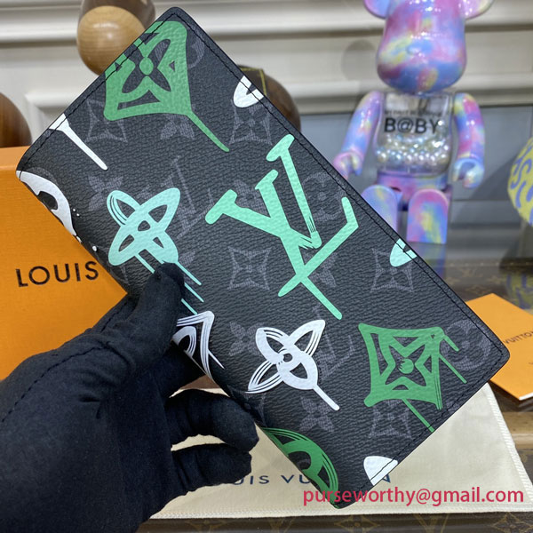 The practical Brazza Wallet takes it to the street with this version made from Monogram Eclipse canvas, featuring a spray-paint treatment of the Monogram Flowers and LVs. Eminently functional, it boasts numerous slots for cards, a special coin compartment and a gusseted pocket for bills. The Brazza slips into most breast pockets.