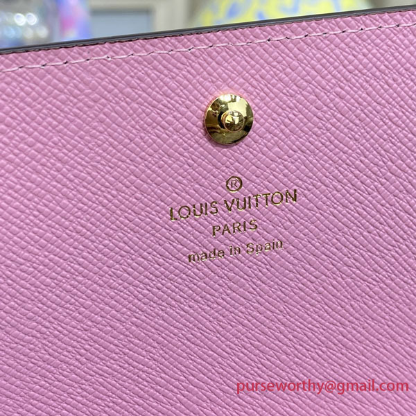 The Sarah wallet in Damier Ebene canvas is revisited for the Vivienne Holidays 2022 collection, which celebrates the spirit of travel. An exclusive print pays tribute to Paris with a colorful scene featuring Louis Vuitton's mascot Vivienne cycling past its boutique on Place Vendôme. An ideal gift, this collectible edition of this elegant flap wallet is finished with a pink leather lining.