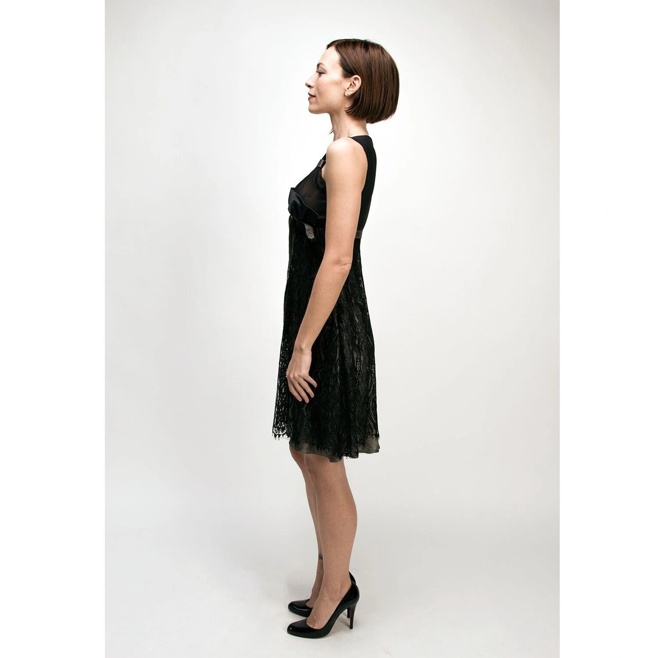 Color: Black lace over taupe silk