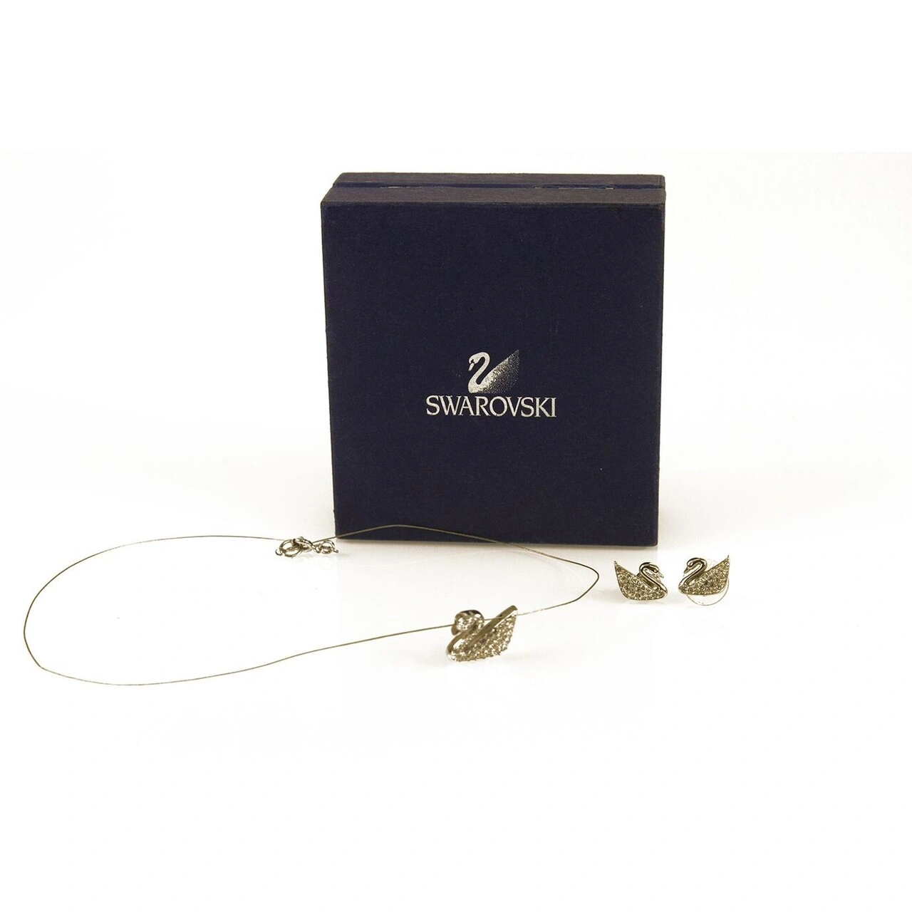 Brand: SwarovskiColor: SilverMaterial: CrystalCondition: 8 Good preowned condition, items used with love but the metal on the earrings is a bit bent and is missing one of the clear plastic ear protectives