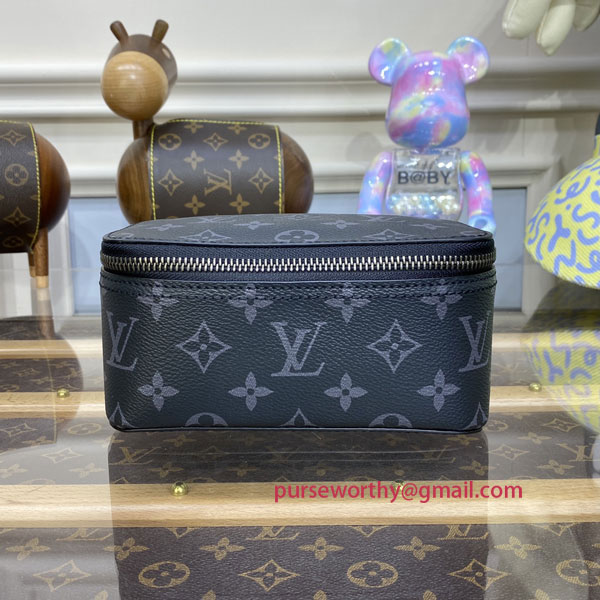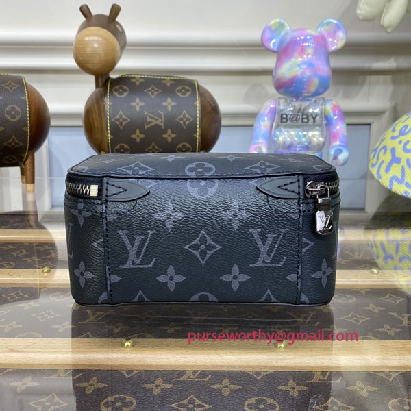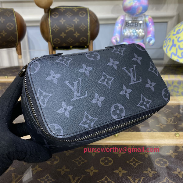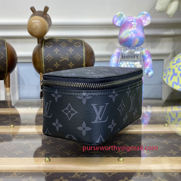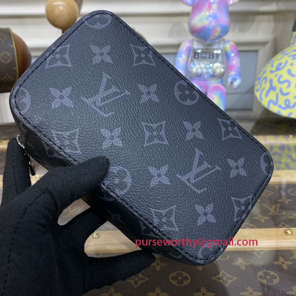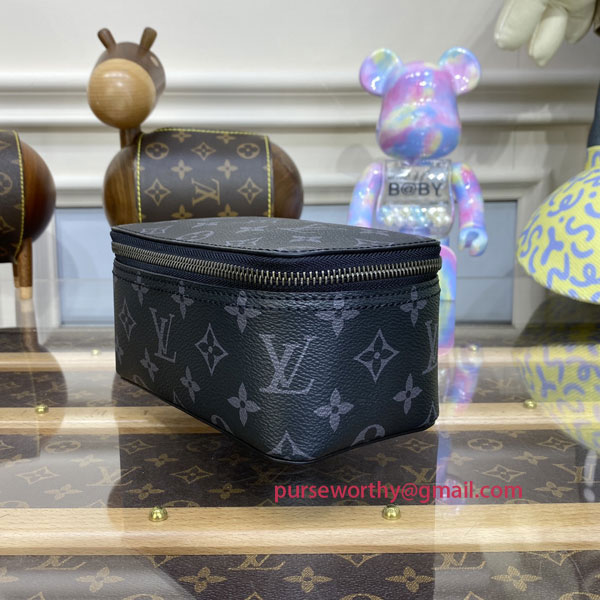 In Monogram Eclipse canvas, the Packing Cube PM is a practical solution for modern travelers, which was inspired by Louis Vuitton's travel heritage. The small size is ideal for accessories, including ties and underwear, keeping them neat and tidy, and separate from other items in a suitcase. The cube's wide, zipped opening offers easy access.