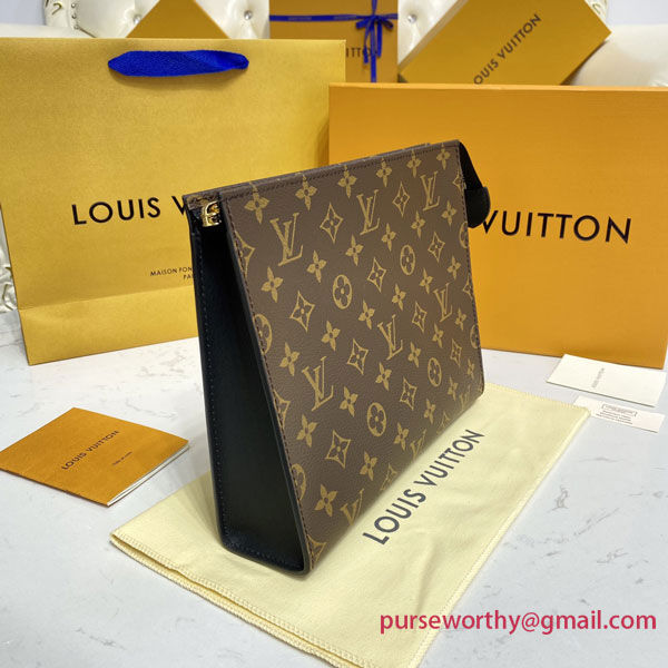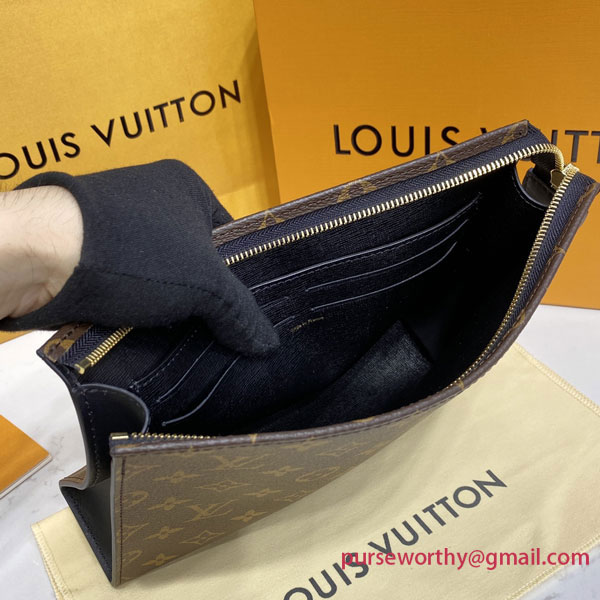 The Poche Toilette offers a convenient, stylish way to carry personal necessities. Crafted in Louis Vuitton’s timeless Monogram canvas and fine black cowhide with a gold-finish zipper, it emanates quality and sophistication. More than just a toiletry bag, its ingenious design incorporates four card slots plus a patch pocket for papers. Ideal for today’s mobile lifestyles.