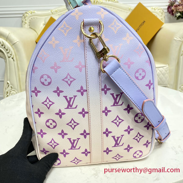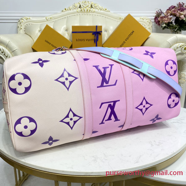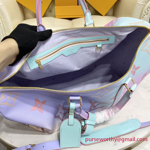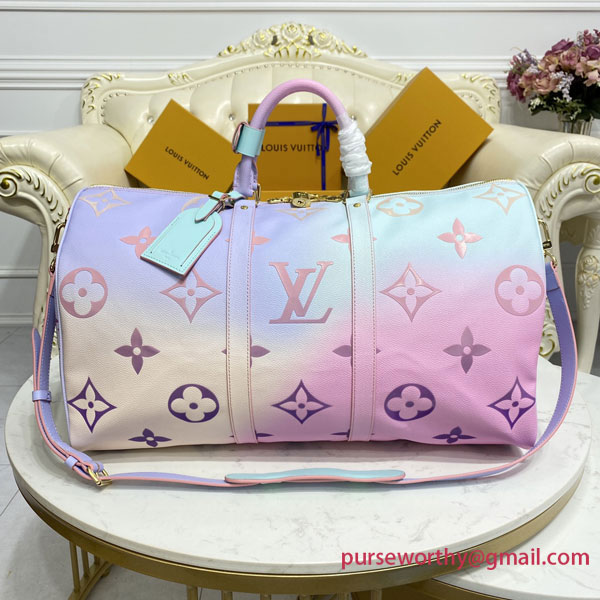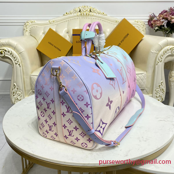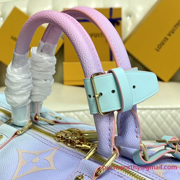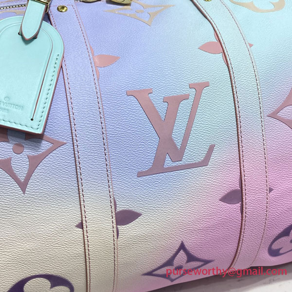 The Sunrise Pastel theme gives Louis Vuitton’s classic Keepall bag a bright fresh look for Spring 2022. The House’s iconic Monogram canvas comes in a burst of soft, feminine colors for an eye-catching, upbeat effect. Designed to offer maximum capacity in a cabin-size bag, the Keepall lives up to its name.
