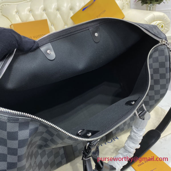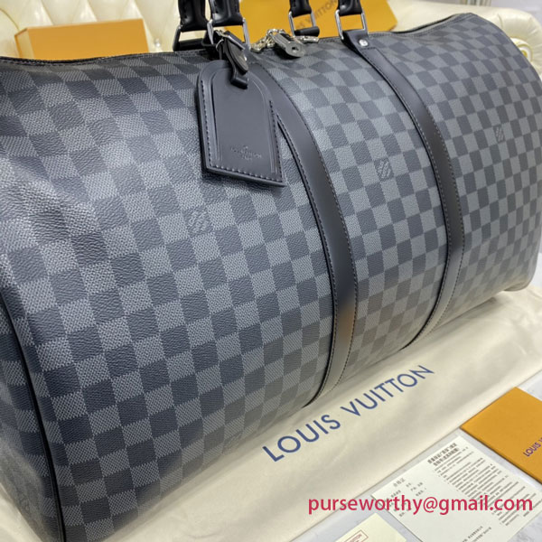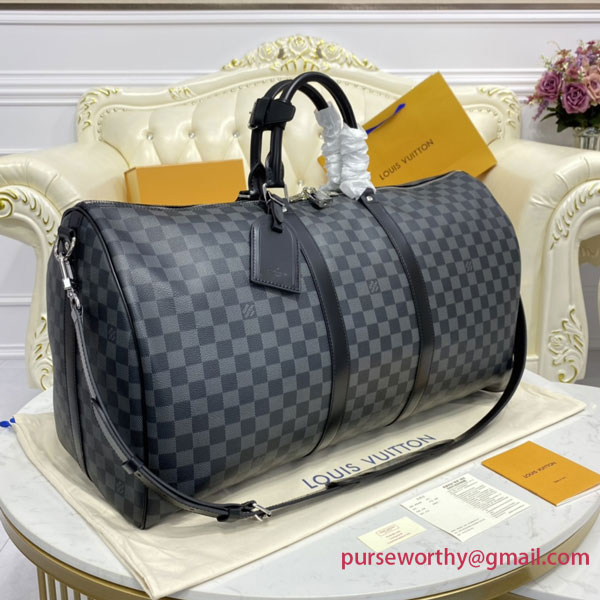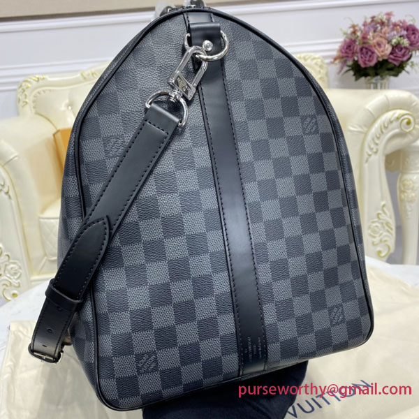 This urban travel bag in a revisited classic, Damier Graphite canvas, is not only stylish but also resistant and light. Hand held with a removable shoulder strap makes it extremely practical to use.