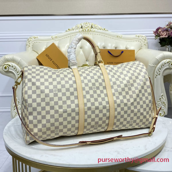 This Keepall Bandoulière 55 comes in the chic canvas of Damier. It has a timeless yet fresh feel that effortlessly captures the spirit of travel. With plenty of room inside, it is practical too.
