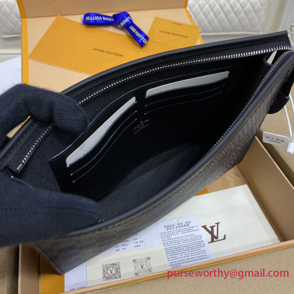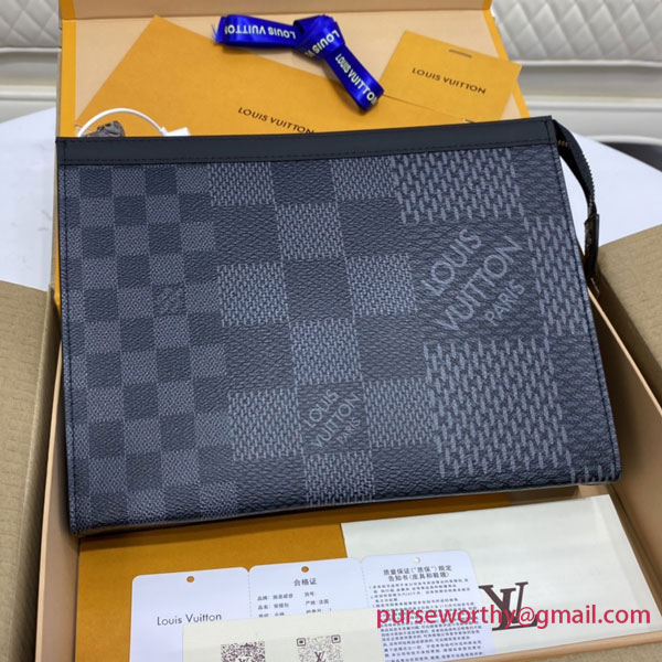 The Pochette Voyage emanates contemporary chic with Damier Graphite 3D canvas, an original variation on Louis Vuitton’s iconic checkerboard motif in cool, classic gray. This innovative accessory is ideal as a supplement to a suitcase or for everyday use with its large main compartment plus six card slots. An elegant, practical way to carry travel documents and other necessities.