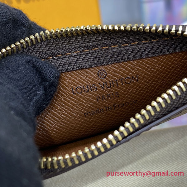 The Key Pouch in iconic Monogram canvas is a playful yet practical accessory that can carry coins, cards, folded bills and other small items, in addition to keys. Secured with an LV-engraved zip, it can be hooked onto the D-ring inside most Louis Vuitton bags, or used as a bag or belt charm.